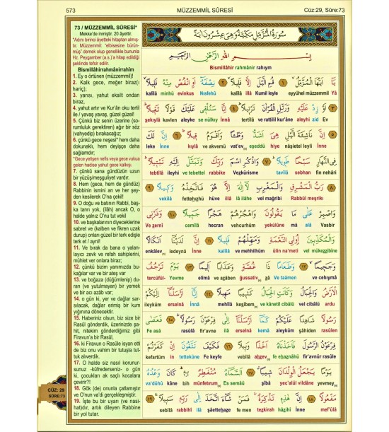 Bu eser, Kur’an-ı Kerîm’i Arapça aslından okumayı bilmeyen okuyucularımıza yardımcı olmak amacıyla okunuşları Latin harfleri ile Arapçalarının altına kelime kelime yazılmıştır. Bu eserde Arapça yazılışlarıyla Latin harflerinin okunuşlarının farklı yazılmış olmaları, Latin harfleri ile yazılışlarının mümkün olduğunca tecvid kaidelerine göre yazılmış olmasındandır. Burada Latin harfleri ile yazılabilen tecvid kaideleri de genel olarak idğamlardan oluşmaktadır. Eserde, bu tecvid kaidesine göre kendisinden sonra gelen harfe idğam olmadan önceki orijinal sesleri de parantez içinde idğam olunan harfin altına konmuştur. Bu eser, Kur’an-ı Kerîm’i Arapça okumayı bilmeyen bireylere Arapça aslından okumayı öğrenmelerine katkı sağlamak amacıyla hazırlanmıştır.